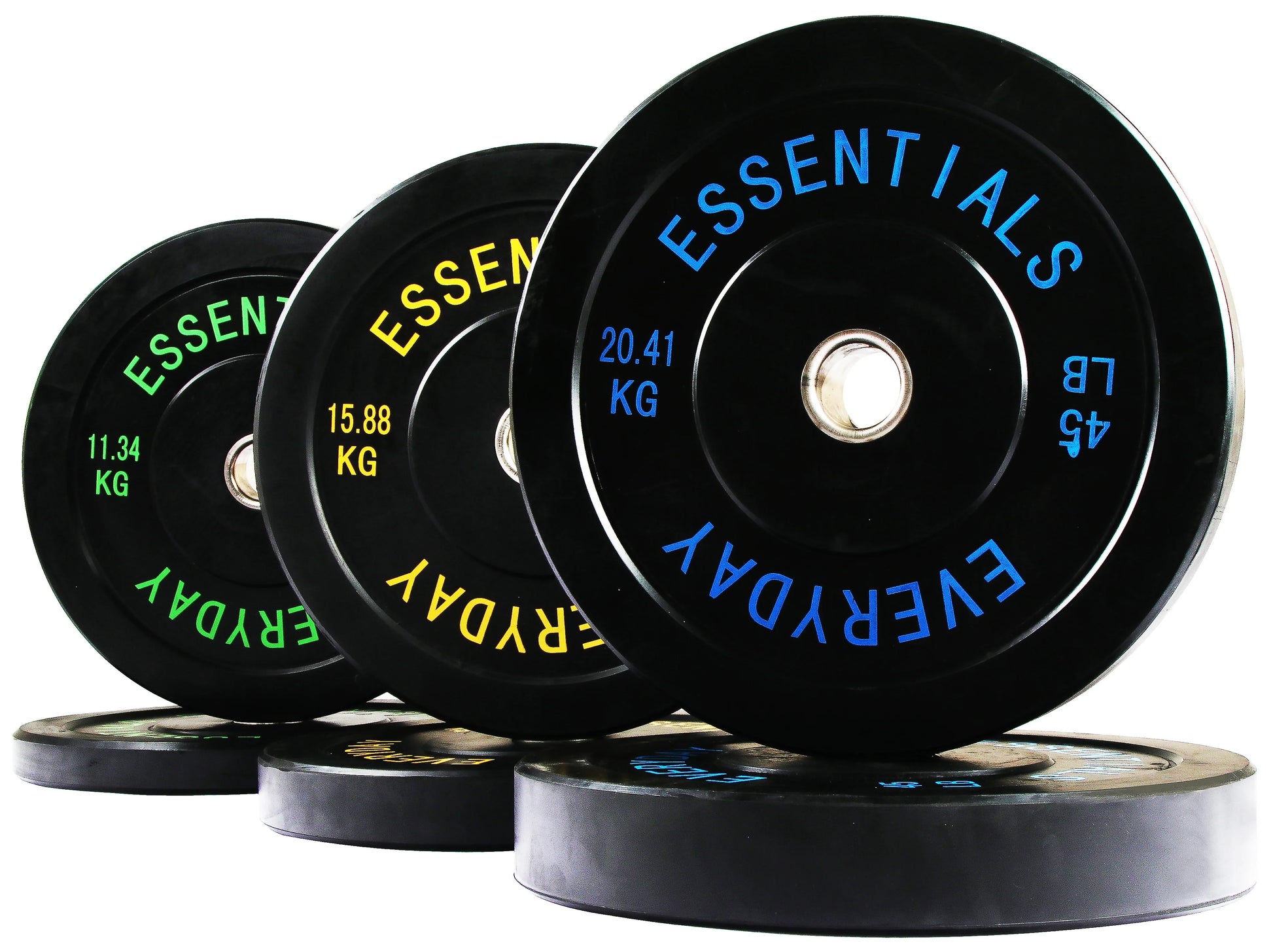 *** IMPORTANT - Everyday Essentials 10 pounds plates are NOT designed to be used ALONE. To make all plates in same diameter, all standard 10 pounds plates are thin, so they will bend if you use them alone. This will damage your 10 pounds plates. ***Overview: Bumper plates, or just bumpers, are Olympic-sized weight plates that are made of thick, dense rubber for the purpose of allowing a loaded bar to be safely dropped without risk of damaging your lifting platform, the plates themselves, or the floor.High Density rubber plates with solid stainless steel insert can withstand repeated drops. They will not only protect any type of floors, but also protect your bars. Color coded based for easy identification. Weight is labeled in both pounds and kilograms. Good for strength training, weightlifting, etc.